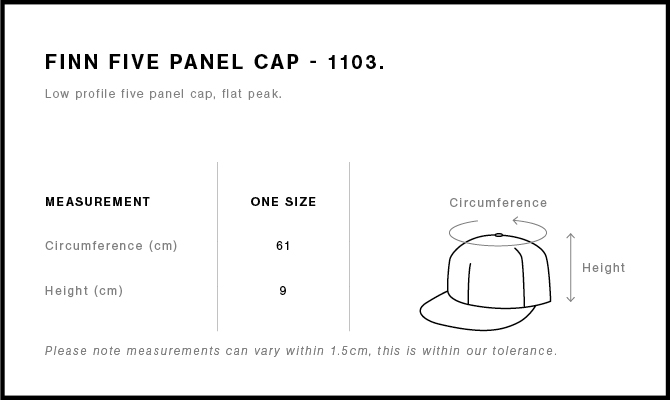 The AS Colour Finn is a mid-weight, low profile, unstructured 5 panel cap. It's made with 100% cotton and has a flat peak, metal side eyelets and an adjustable plastic fastener .Decorated with digital transfer or vinyl decal.
